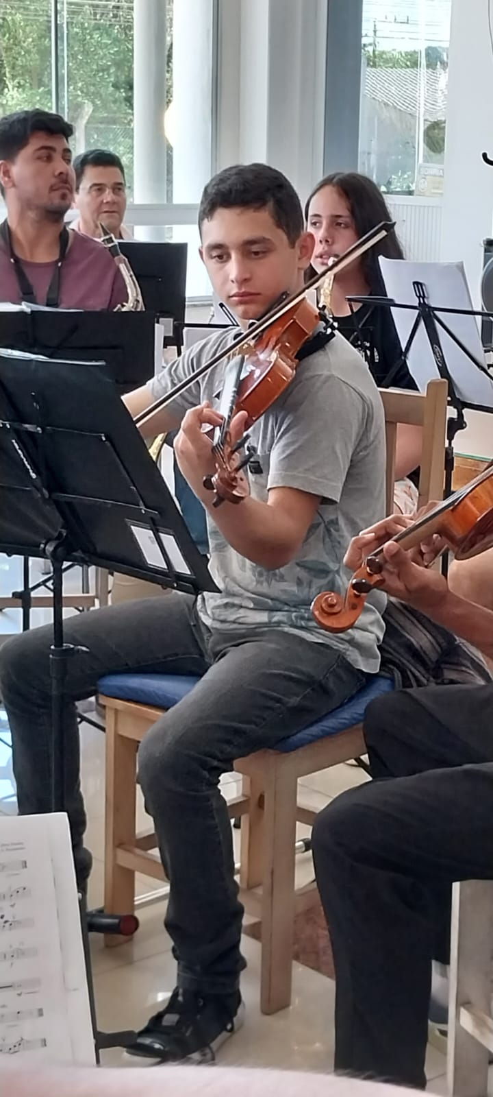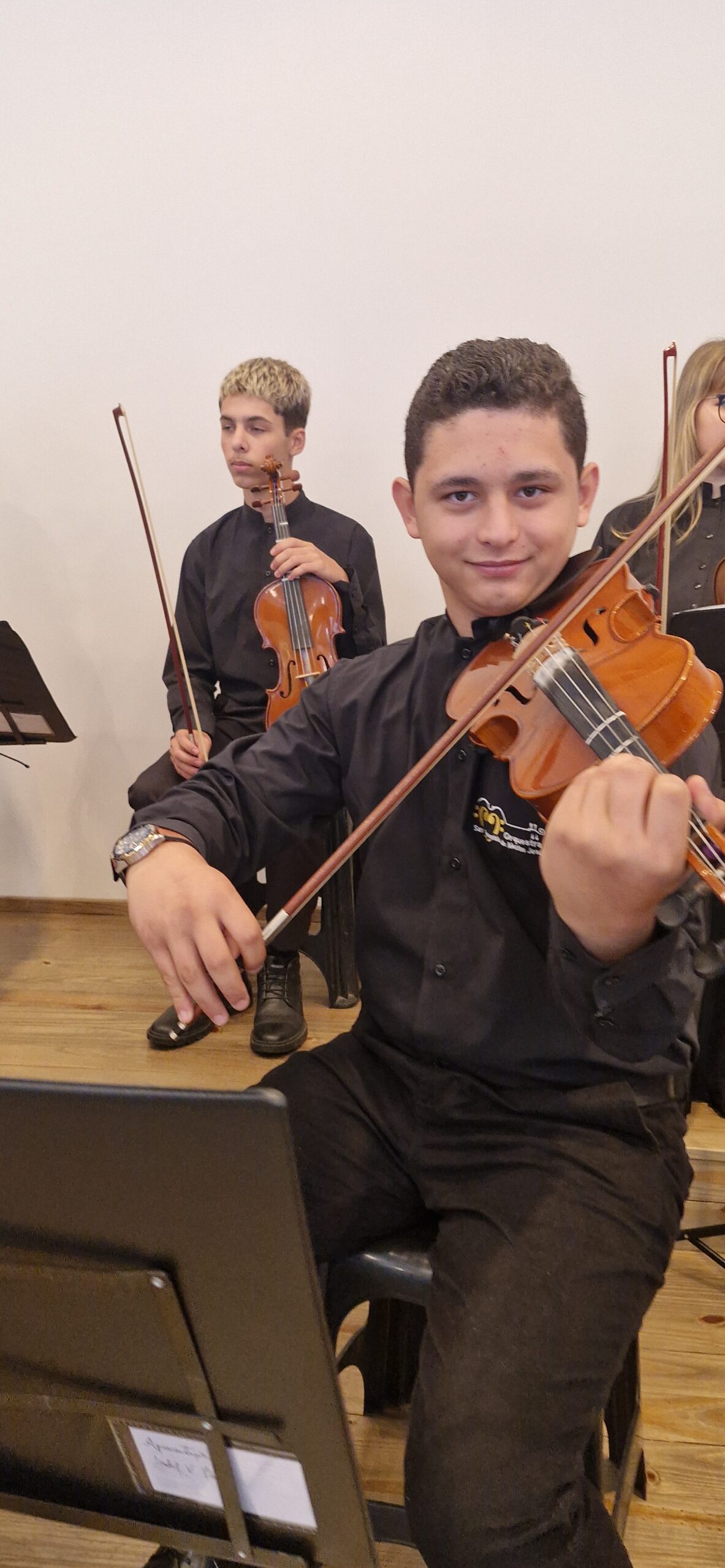 Oi! Eu sou o Gedeão Vieira Filho tenho 18 anos, estou fazendo a Faculdade de Licenciatura em Música pela Uniter . Minha jornada na musical tem o início no ano de 2017 aos meus 9 anos com o Professor e Maestro Julierme Beckhauser Blasius que me ensinou a tocar Violino com o Método Suzuki ( é uma filosofia de ensino musical que visa desenvolver a habilidade musical de crianças e adolescentes. Foi criado pelo violinista e pedagogo japonês Shinichi Suzuki, nascido em 1898, data de falecimento 1998), começei minha jornada na Orquestra Santa Terezinha do Menino Jesus. Participei de inúmeras Apresentações, Workshops e Aulas com a orquestra. Em 2023 fui selecionado para fazer parte da Orquestra da Faculdade UniVinte no Naipe de Violinos . Em 2024 começei com aulas de aprimoramento estrutural musical, sendo uma das coisas mais abordadas era a interpretação junto da identificação de notas, criação de partituras e o uso de Solfejo antes de tocar qualquer obra de um compositor.